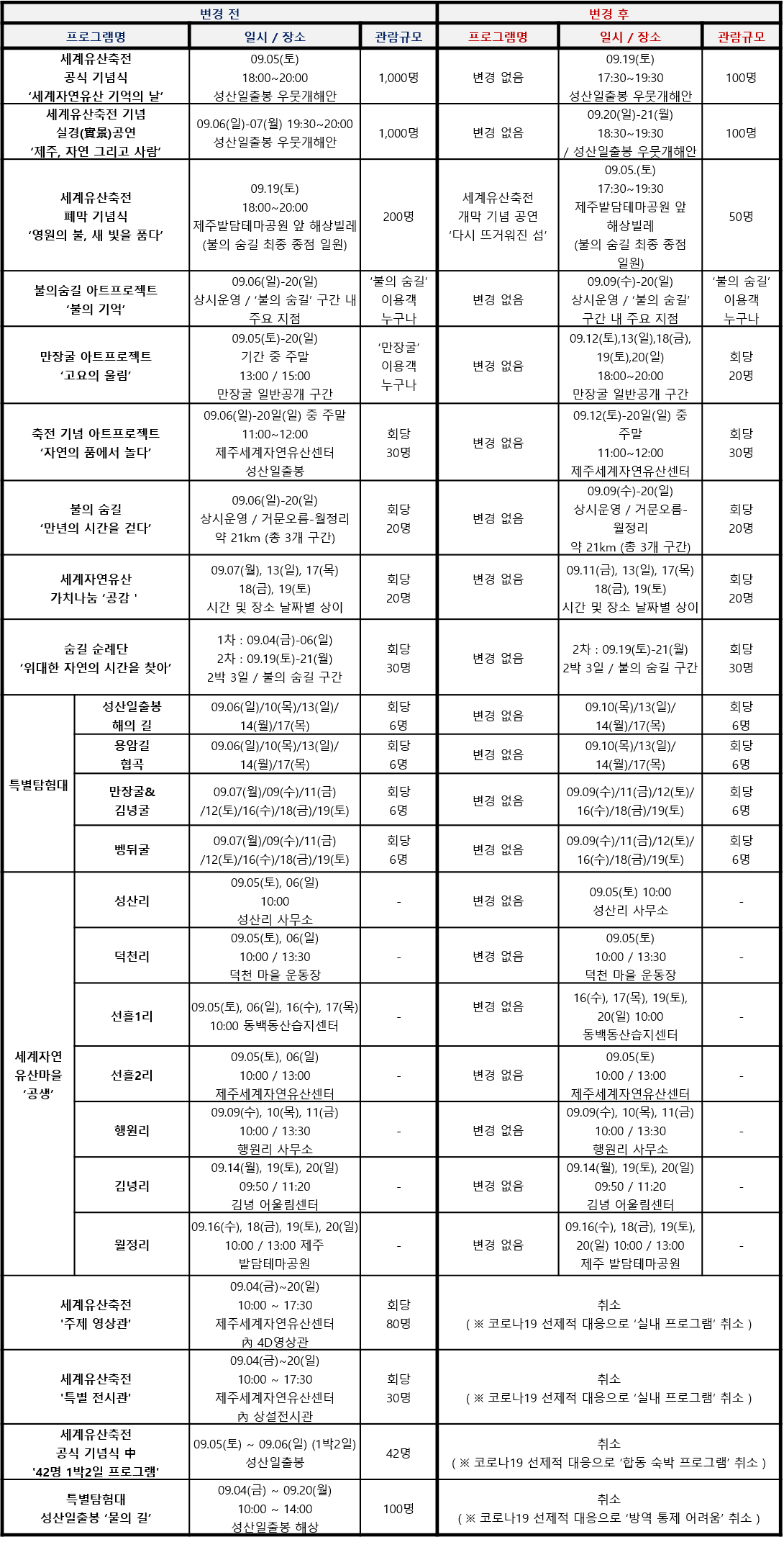 [공지] 세계유산축전 변경 및 취소 프로그램 안내 (9월 8일 4시 기준)